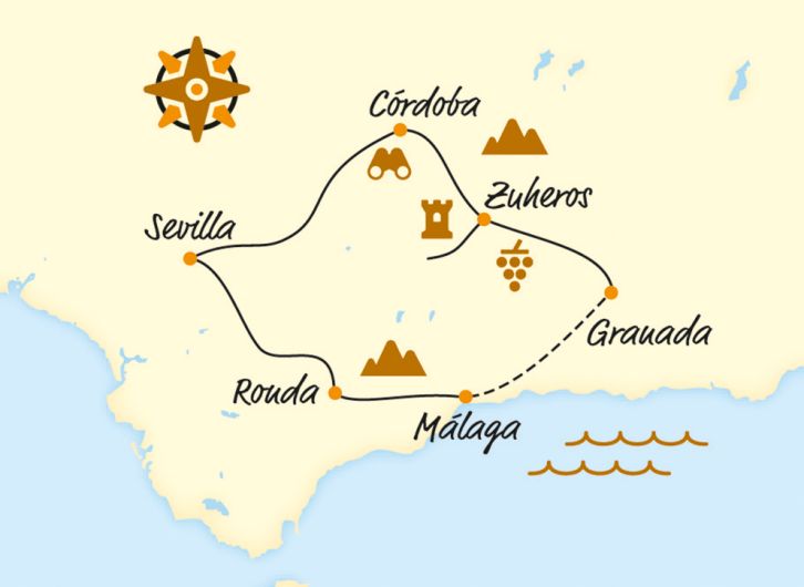 - Jeweils zwei Übernachtungen in Ronda, Sevilla und Granada