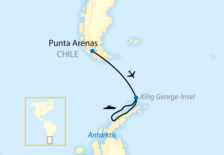Die Besonderheit dieser Antarktis-Kreuzfahrt: Sie überfliegen die für Mägen und Nerven schwierige Drake-Passage ganz einfach! Ganz bequem geht es per Flugzeug zur King George-Insel und erst dort an Bord Ihres komfortablen Expeditionsschiffs.
