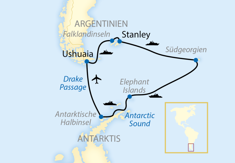 18-tägige individuelle Expeditions-Kreuzfahrt zu den Falkland-Inseln, nach Südgeorgien und in die AntarktisBeschreibung